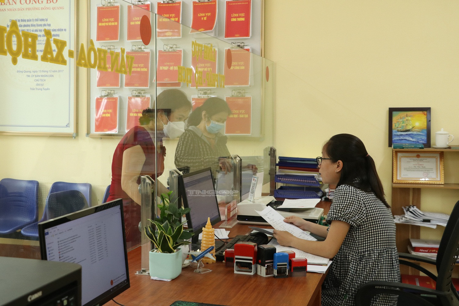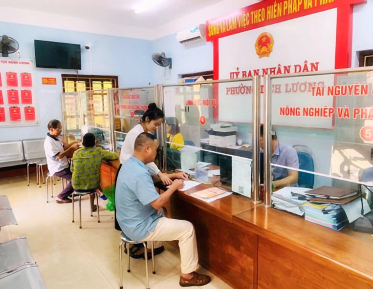 Người dân đến làm thủ tục hành chính tại Bộ phận một cửa phường Đồng Quang, TP. Thái Nguyên