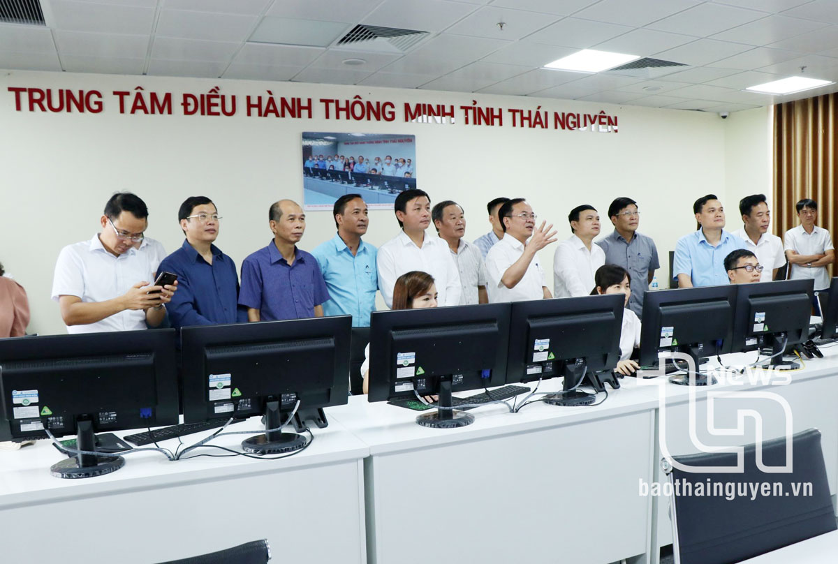 Các đại biểu thăm quan Trung tâm điều hành thông minh của tỉnh.